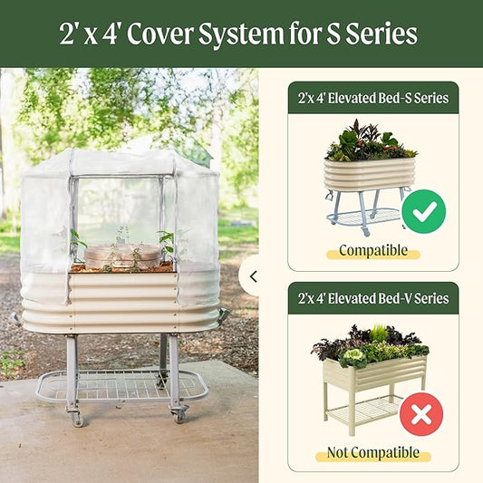 Vego garden Cover System for 2.0' x 4.0' Elevated Rolling Garden Bed-S Series