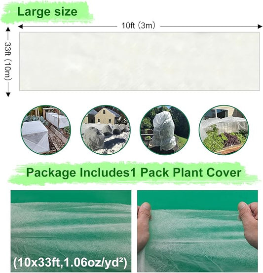 Plant Covers Freeze Protection, 10 FT x 33 FT Frost Blankets 1.06oz/yd² Thick crop cover , Reusable Garden Frost Cloth Floating Row Tree Covers for Winter Outdoor Plants vegetables seed Fruit