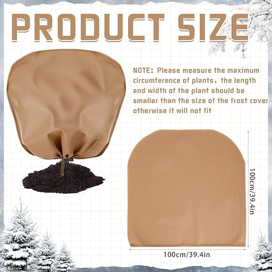 6 Pcs Winter Plant Covers Freeze Protection 39.4 x 39.4 Inch Horizontal Shrub Tree Rose Plant Protection Bags Frost Blanket with Drawstring for Fall Winter Outdoor Garden Planting, Brown
