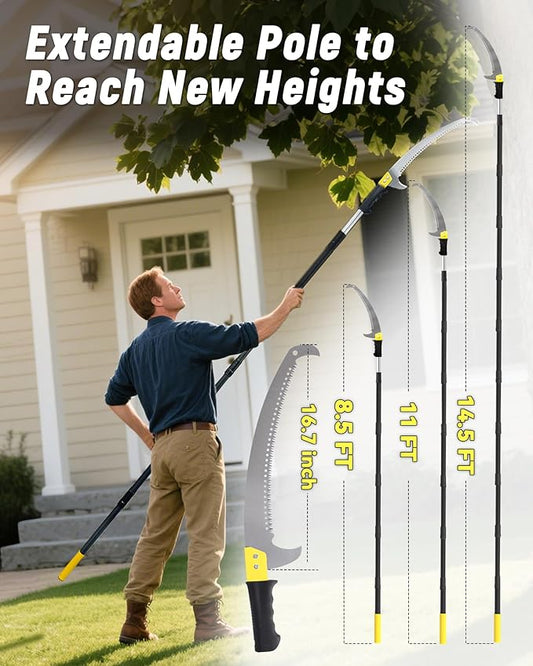 14.5FT Pole Saw with Adjustable Length for Tree Trimming, Lightweight Manual Pruning Saw with Mn Steel Blade, Long Extension Branch Cutter Pole Pruner for Yard, Garden, Patio & Forestry Use