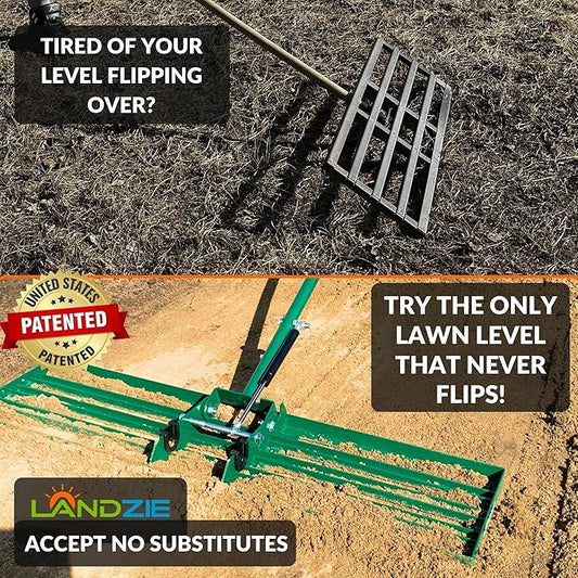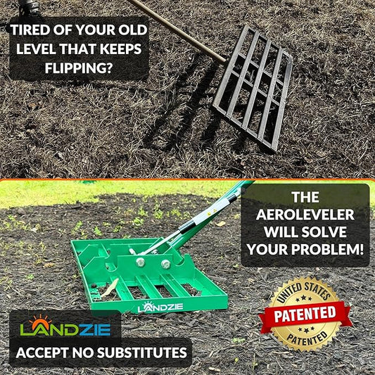 Landzie AeroLeveler - The Lawn Leveling Rake That Never Flips - Patented 36 inch Wide Pneumatic Lawn Level for Yard, Dirt, Soil, Sand, Provides Stability and Control Without Flipping Over