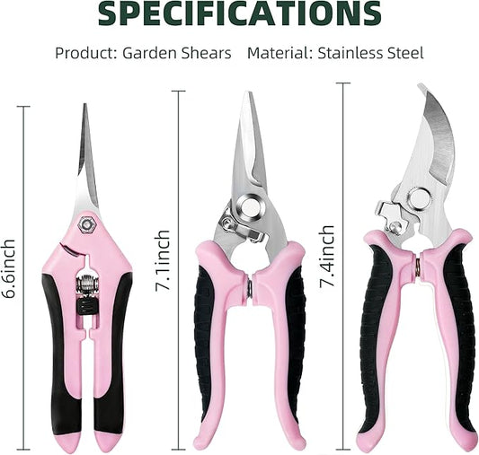 3 Pack Garden Pruning Shears, Stainless Steel Shears, Gardening Shears, Scissors, Garden Clippers, Pruning Snips, Pruning Shears for Gardening Tools (Pink)