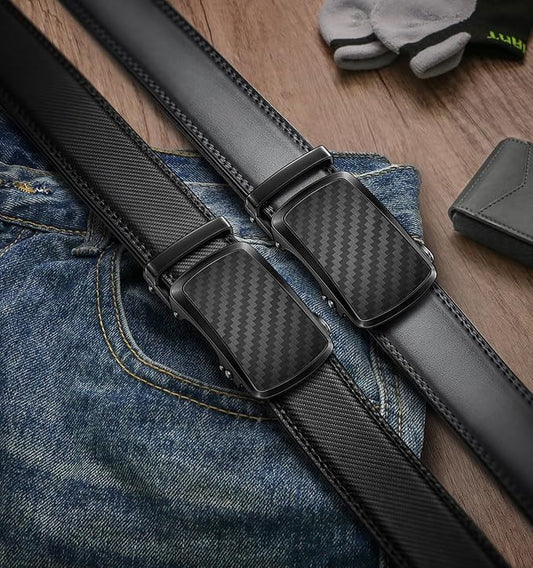 BULLIANT Men's Ratchet Belt 2 Pack-Click Leather Belt Adjustable for Men Gift 1 3/8-Cut for Perfect Fit