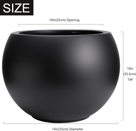 10 H x 14" Dia (10" Pot Opening) Round Fiberstone Planter with Drainage Hole, Black, Indoor/Outdoor Large Plant Pot for Home Patio Garden, Ideal for Large Plants