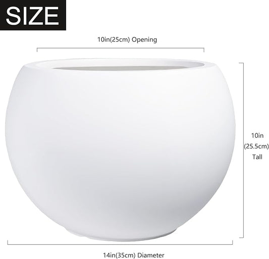 10 H x 14" Dia (10" Pot Opening) Round Fiberstone Planter with Drainage Hole, White, Indoor/Outdoor Large Plant Pot for Home Patio Garden, Ideal for Large Plants