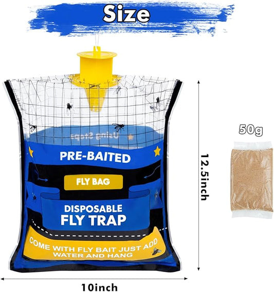10 Fly Traps Hanging Outdoor, Natural Pre-Baited Fly Bag Outdoor Disposable, Fly Catcher, Killer, Hunter, Stable, Farm, Barn, Ranch, Fly Trap for Mosquitoes