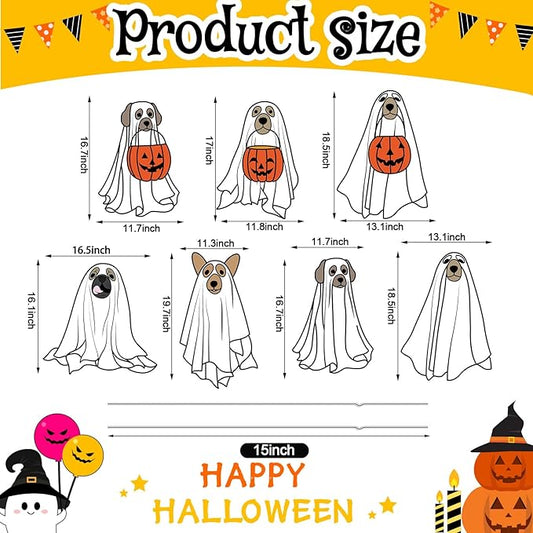 Nuanchu 7 Pcs Halloween Yard Outdoor Decorations Ghost Dog Yard Signs Corrugated Plastic Ghost Dog Pumpkin Lawn Sign with Stakes Waterproof Halloween Garden Stakes for Outside Scary Spooky Decor