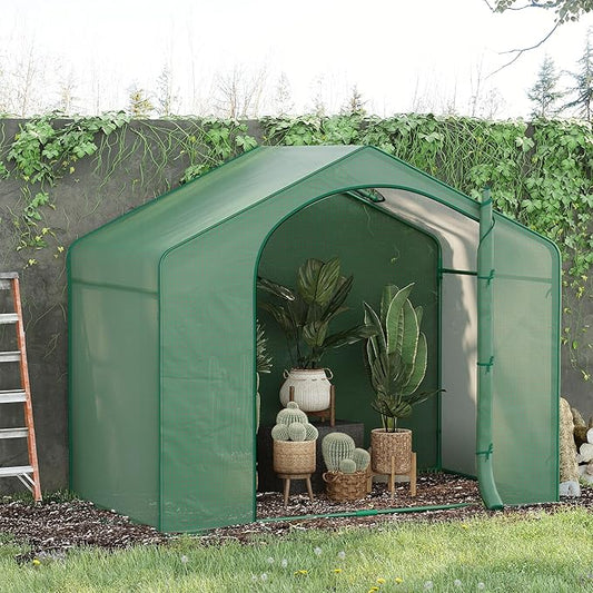 Outsunny 6' x 3' x 5' Portable Walk-in Greenhouse, PE Cover, Steel Frame Garden Hot House, Zipper Door, Top Vent for Flowers, Vegetables, Saplings, Tropical Plants, Green