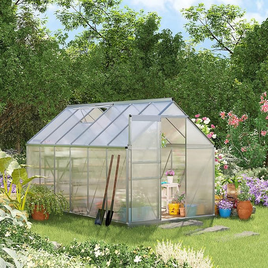 Outsunny 6' x 10' Greenhouse for Outdoors, Polycarbonate Greenhouse with Rain Gutter and Roof Vent, Aluminum Walk-in Green Houses for Outside for Patio Backyard Garden, Gray