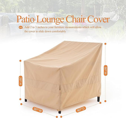 Patio Chair Cover, Outdoor Furinture Covers, Heavy Duty, Waterproof Lawn Chair Cover, 36W x 40D x 36H, Beige, 1-Pack