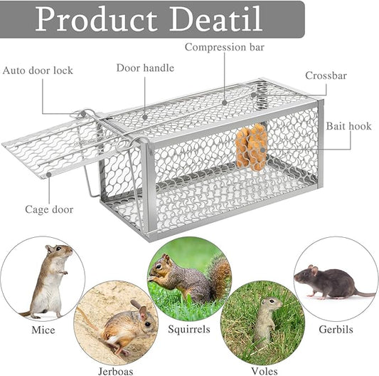 Qualirey 2 Pcs Humane Rat Trap Chipmunk Rodent Mouse Squirrel Trap Small Live Animal Mouse Voles Hamsters Live Cage Rat Mouse Cage for Mice Easy to Catch and Release (Silver)