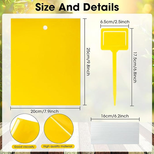 Qualirey 200 Pcs 7.87 x 9.84 Inches Yellow Sticky Traps for Plant Gnats Dual Sided Fruit Fly Sticky Traps for Indoors and Outdoors with Twist Ties and Plastic Holders for Plant Insect, Fungus Gnats