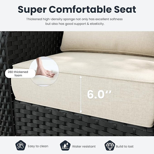 10 Pieces Patio Furniture Set, Outdoor Sectional Wicker Sofa with Thick Cushions and Storage Coffee Table, Rattan Patio Conversation Sets for Deck Yard Poolside, Khaki