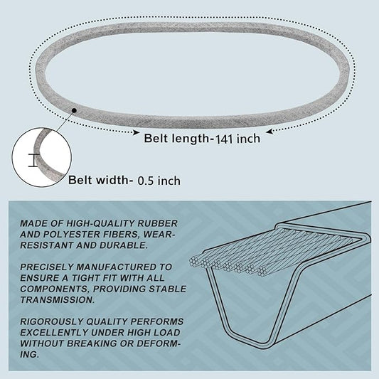 1/2 x 143'' Mower Belt Replace for John Deere GX10176 M123281 M155525 M154601 Ariens 07241600 7241600 Gravely 07241600 7241600 Lawn Mower Belt Kevlar Lawn Mower Belt (M123281)