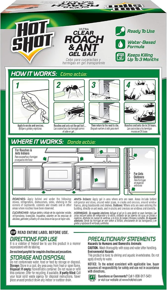 Hot Shot Ultra Clear Roach & Ant Insects Gel Bait , 2.5 oz