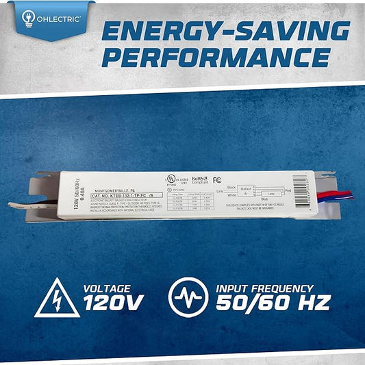 OHLECTRIC Replacement for Keystone KTEB-132-1-TP-FC | 1 Lamp T8 Electronic Fluorescent Ballast | 120V Input with Rapid Start Operation | Finger Case | UL Listed