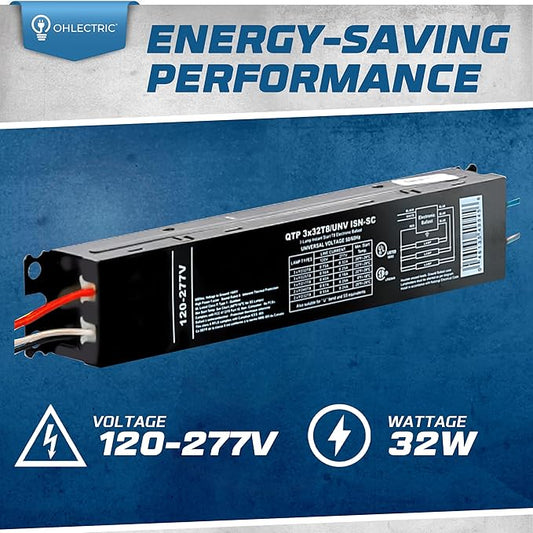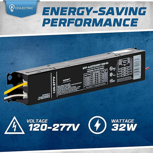 OHLECTRIC Replacement for ICN-4P32-SC 3 & 4 Lamp T8 Fluorescent Electronic Ballast - Standard and Energy Efficient Ballasts - 120-277 Volt - Instant Start - UL Approved - OL-45323