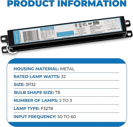 ICN2P32N, 120-277V, 50-60Hz Input Frequency, Solid Wire Type, Instant Start Centium Electronic Fluorescent Ballast for 2 F32T8 Lamp Type, Indoor/Outdoor Use with Automatic Restart Ballast Box, 10 Pack