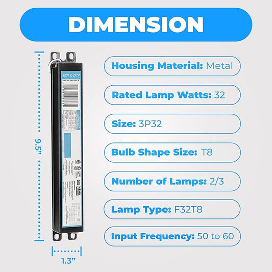 OHLECTRIC Replacement for ICN-3P32-SC 1,2 & 3 Lamp - T8 Fluorescent Electronic Ballast - 120-277V - Standard and Energy Efficient Ballasts- Instant Start - Standard Ballasts - OL-47006