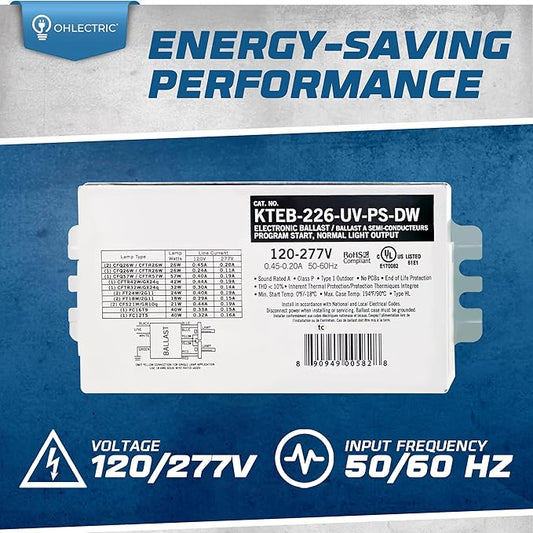 OHLECTRIC Replacement for Keystone KTEB-226-1-TP CFL Electronic Fluorescent Ballast | 2 Lamp 26 Watt & 120V Input with Rapid Start | Thermally Protected Design for Enhanced Safety and Efficiency