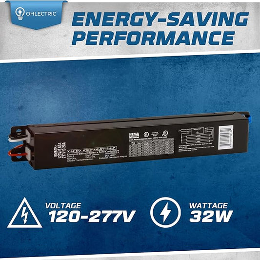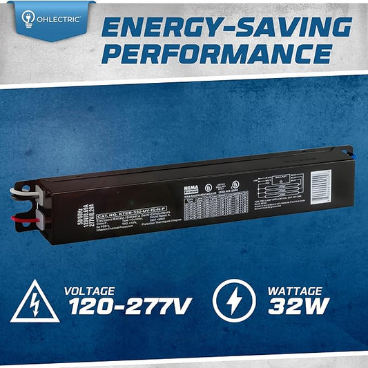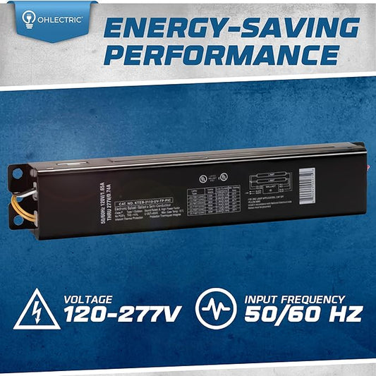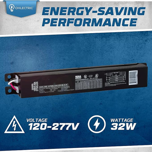 OHLECTRIC Replacement for Keystone KTEB-232-UV-IS-N-P 2 Lamp T8 Electronic Fluorescent Ballast with Normal Light Output | 120-277V Input with Instant Start Operation | 0.88 Ballast Factor, UL-Approved