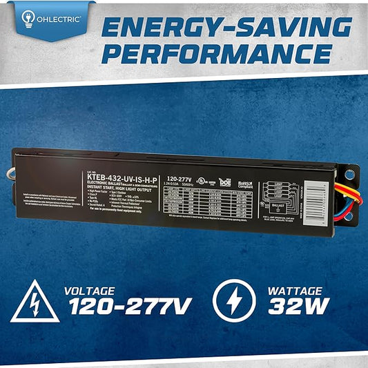 OHLECTRIC 2 Pack - Replacement for Keystone KTEB-432-UV-IS-H-P 4 Lamp T8 Electronic Fluorescent Ballast with High Light Output | 120-277V Input with Instant Start Operation | 1.16 Ballast Factor