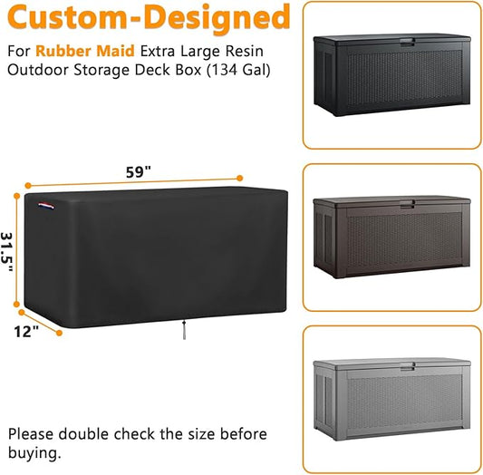 Outdoor Storage Deck Box Cover, Waterproof Outdoor Storage Container Covers 113 Gal ,Heavy Duty Patio Storage Bench Cover for Patio Furniture,59"W x 15"D x 31.5"H