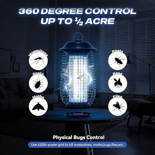 Bug Zapper Indoor & Outdoor, 4200V Electric Mosquito Zapper, 10 Years Lifespan, 6.5ft Power Cord, Waterproof, Fly Trap Mosquito Trap, Fly Killer Fly Zapper for Home, Patio, Kitchen, Backyard, Camping