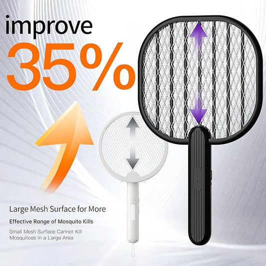 Electric Fly Swatter Bug Zapper: 3500V Mosquito Killer Racket with USB Rechargeable Insect Trap Pest Control Handheld Lightweight 5-Layer Safety Mesh for Indoor Home Office Backyard Patio Camping