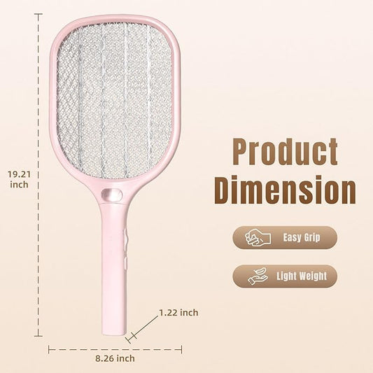 Electric Fly Swatter Racket 3000V Bug Zappers, Mosquito Zappers USB Rechargeable, 1200mAh Mosquitoes Killer Lamp & Fly Zappers with 3 Layer Safety Mesh for Home, Bedroom, Kitchen, Patio (1Pack-Pink)