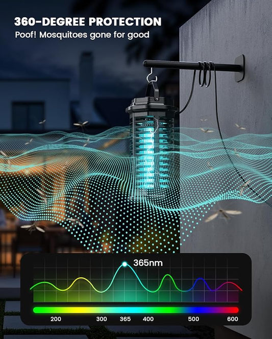 Minimoon Bug Zapper Outdoor, 4200V Electric Mosquito Zapper Indoor, IPX4 Waterproof Insect Zapper Electric Fly Traps, 4Ft Cord, Insect Trap for Yard, Backyard, Patio, Camping