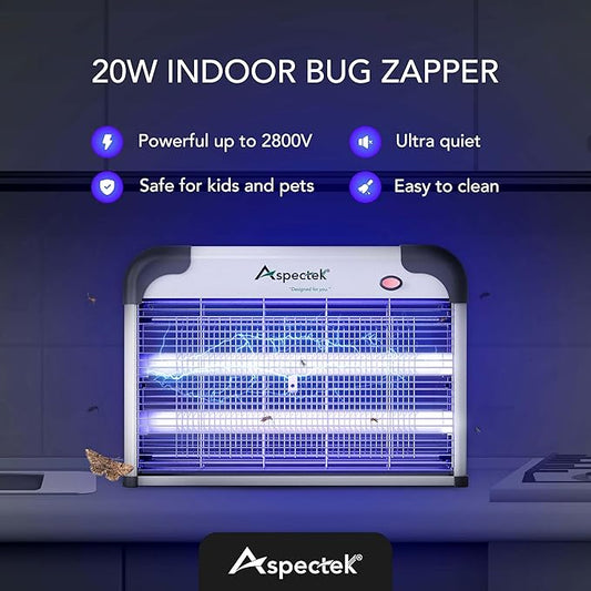 Aspectek 20W Electric Bug Zapper for Indoor Use. Effective Against Mosquitoes and Flies. 2 Extra Replacement Bulbs Included. Lightweight Design, 2800V Powerful Grid, Easy Cleaning, Washable Tray.