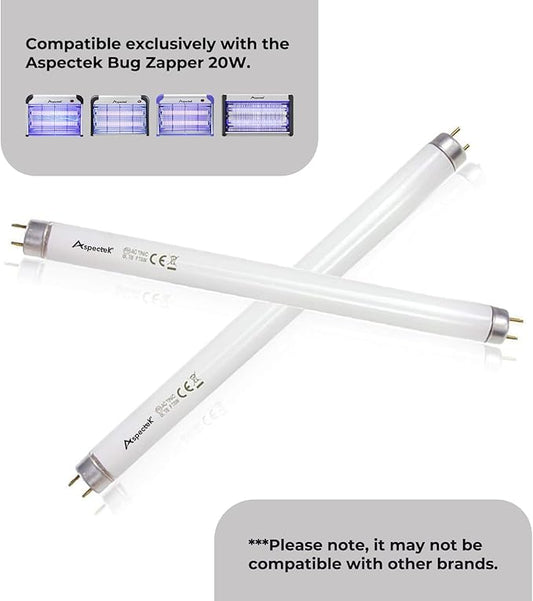 ASPECTEK Bug Zapper Mosquito UV Lamp Replacement Bulbs - Pack of 2X 10W UV Light Tubes, Compatible with ASPECTEK 20W Electronic Bug Zapper Models for Indoor Use