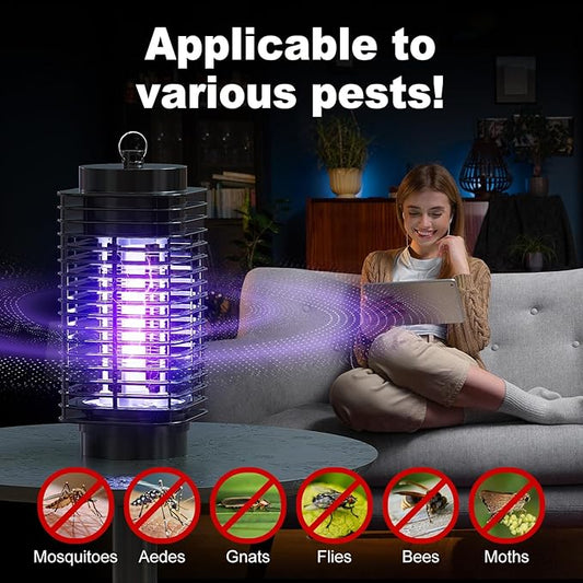 Bug Zapper, Electric Mosquito & Fly Zappers/Killer - Insect Attractant Trap Powerful Bug Zapper Light, Hangable Mosquito Lamp for Home, Indoor, Outdoor, Patio (Black)