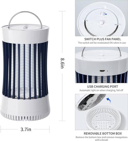 2-in-1 Indoor Electric Bug Zapper with Fan, Chargeable 1500V High Voltage Mosquitoes Killer with Hanger, Small Fly Insects Lamp Trap Catching Moth Gnat Fruit Flies, White