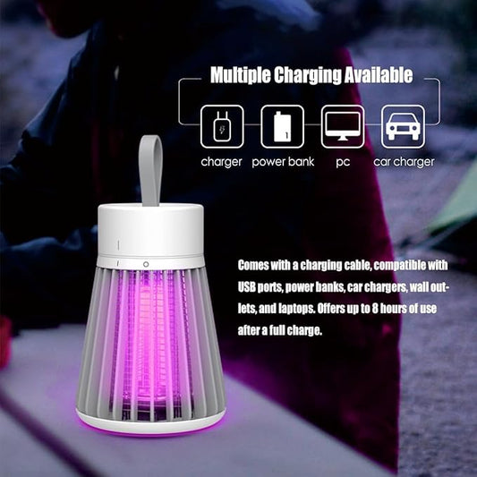 Bug Zapper Rechargeable, Hangable Mosquito Killer Lamp - Portable UV Insect Gnat Trap for Outdoor/Indoor, USB-Powered with Grid for Camping, Bedroom, Patio, Kitchen