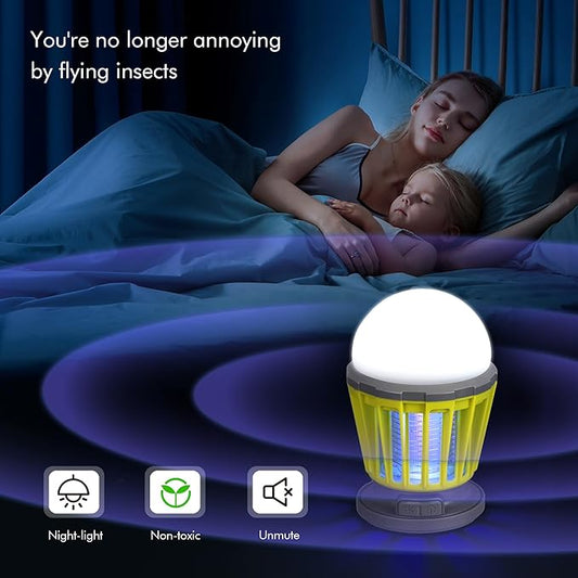 Portable Bug Zapper Indoor Outdoor, 2025 Upgraded Mosquito Zapper 3-in-1 Rechargeable Mosquito Killer & Camping Lamp,Suitable for Patio, Home, Backyard, Yard, Garden, Campsite (White)
