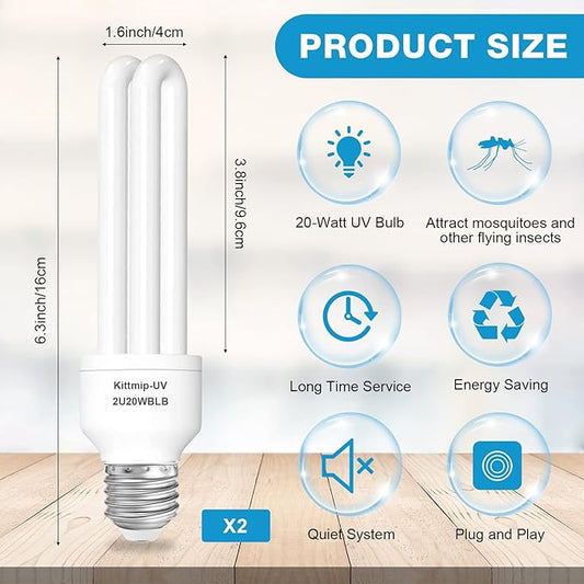 2 Pieces Bug Zapper Light Bulb 2U Type E27 20W Replacement Bulbs Compatible with Homesuit, Keuomy, Yluces, Yissvic, Powify and Other Models Bug Zapper