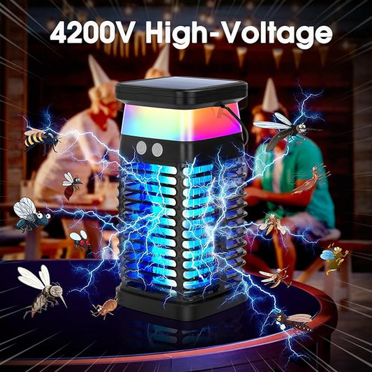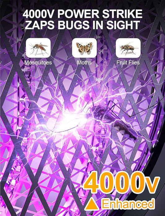 Portable Fly Trap for Indoor & Outdoor, Handheld Outdoor Bug Zapper - 4200V High-Voltage Electric Mosquito Killer with UV Light, IP68 Waterproof, USB-C & Solar Charging, 4000mAh Battery