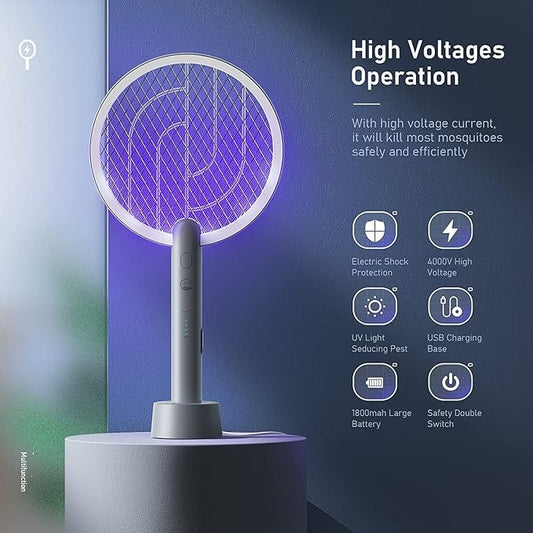 Electric Fly Swatter Racket, Mosiller 2 in 1 Smart Bug Zapper with USB Rechargeable Base, Powerful Mosquitoes Trap Lamp & Fly Killer with 3-Layer Safety Mesh for Home, Bedroom, Kitchen, Patio(1 Pack)