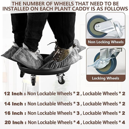 1 Pack Metal Plant Caddy with Wheels 20 Inch Black, Round Rolling Heavy Duty Plant Dolly, Heavy Plant Pot Mover Outdoors or Indoors, The Metal Wheel Can Rotate 360 Degrees or Lockable.