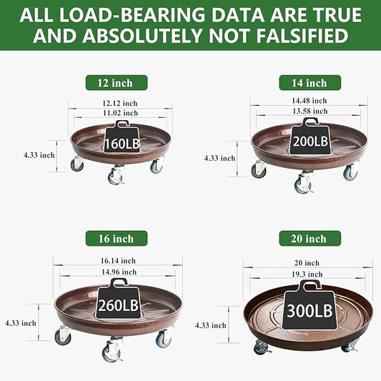 2 Pack Metal Heavy Duty Plant Caddy With Wheels 16 Inch, Round Plant Caddy Suitable For Outdoor and Indoor Mobile Flower Pots, Don't Worry About This Metal Product Getting Deformed or Damaged.