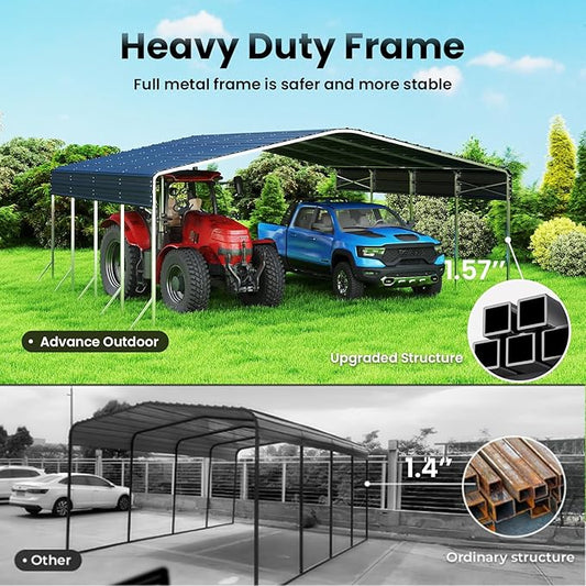20x20' Heavy Duty Metal Carport – Sturdy Structure, All-Weather Protection, Easy Assembly for Cars, Trucks, Boats, Tractors, and Outdoor Storage (Grey, 20x20FT)