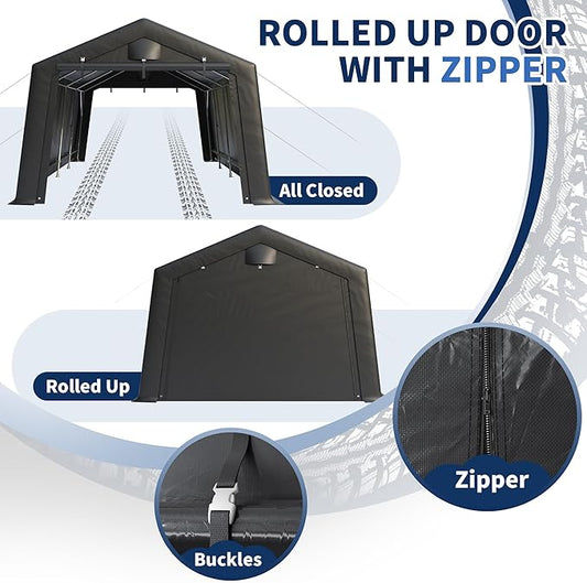 12'×20' Heavy Duty Carport,Car Canopy Portable Garage with Roll-up Zipper Door,Thick Shelter Storage Canopy Tent with All-Steel Metal Frame,Sunshade Waterproof for Motorcycle Car, Truck,SUV