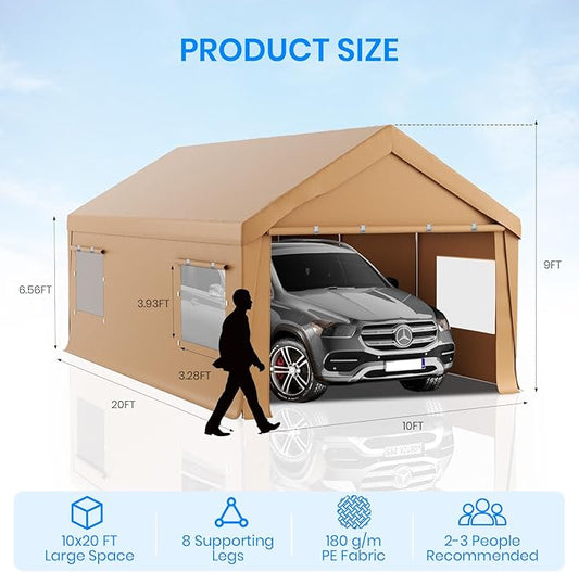 Carport 10x20ft Heavy Duty Car Tent, Portable Garage, Car Shelter, All-Season Tarp Tent for Car, Party,Beige
