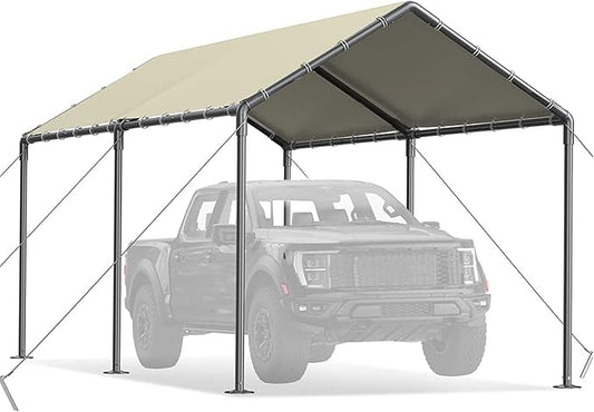 Grezone 10 x 20ft Heavy Duty Carport,Portable Car Tent Garage,All Season UV Resistant Car Canopy for Auto,Truck,Boat,Car (Beige)