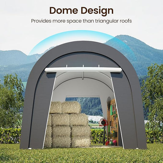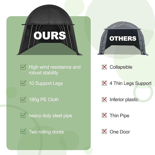 Wisteria Lane Domed Carport, Portable Garage with 2 Roll up Doors, Heavy Duty Car Canopy Party Tent, All-Season Storage Shelter Shed Carport for Motorcycle, Boat, Truck, or Garden Tools, 10' x 20'
