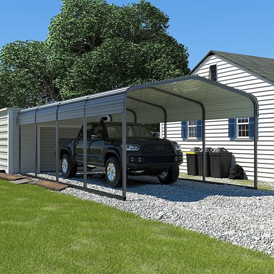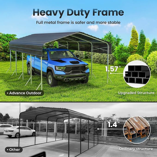 12x20Ft Carport, Heavy Duty Metal Car Port, All-Weather Protection, Easy Assembly for Cars, Trucks, Boats, Tractors, and Outdoor Storage