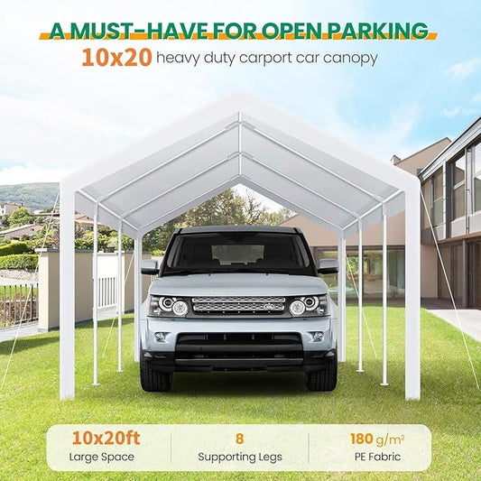 COBIZI Carports 10x20 Heavy Duty Car Tent Garage, Galvanized Frame Car Canopy Outdoor Shelter Waterproof & UV Protected with Windproof Ropes & Built-in Sandbags for Car Truck Boat, White