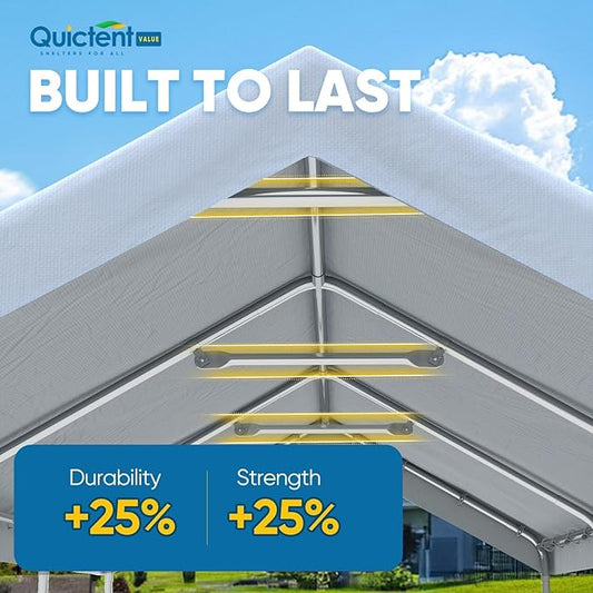 Quictent 12x20 ft Heavy Duty Carport Canopy Galvanized Car Tent Outdoor Garage Boat Shelter with Reinforced Structure with Roll-up Ventilated Windows Sidewall - White